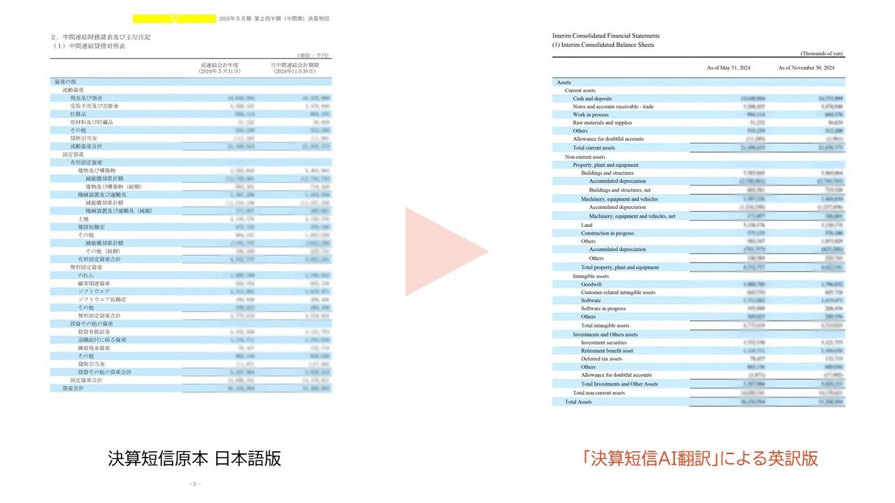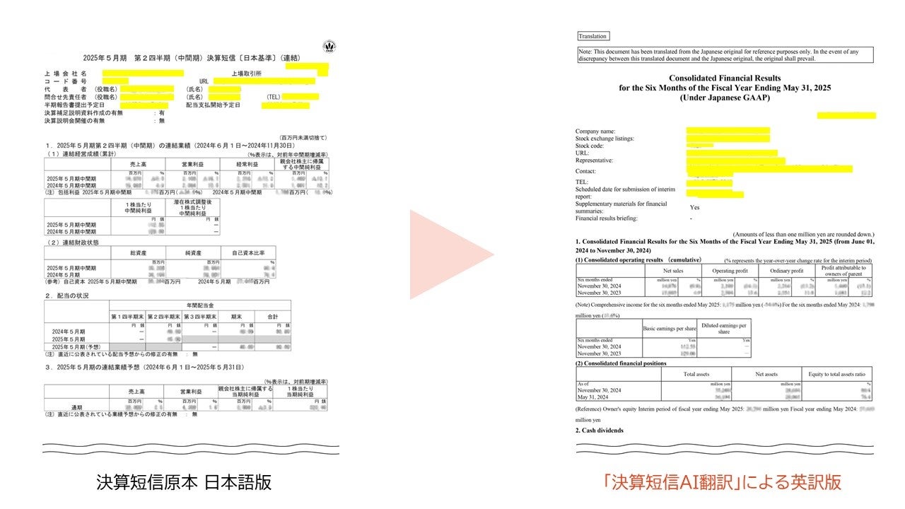 - 拡張性:今回の対象はサマリーや主要財務諸表(貸借対照表、損益計算書、キャッシュフロー計算書)の翻訳ですが、今後は定性情報を含む決算短信全体への対応を予定しています。